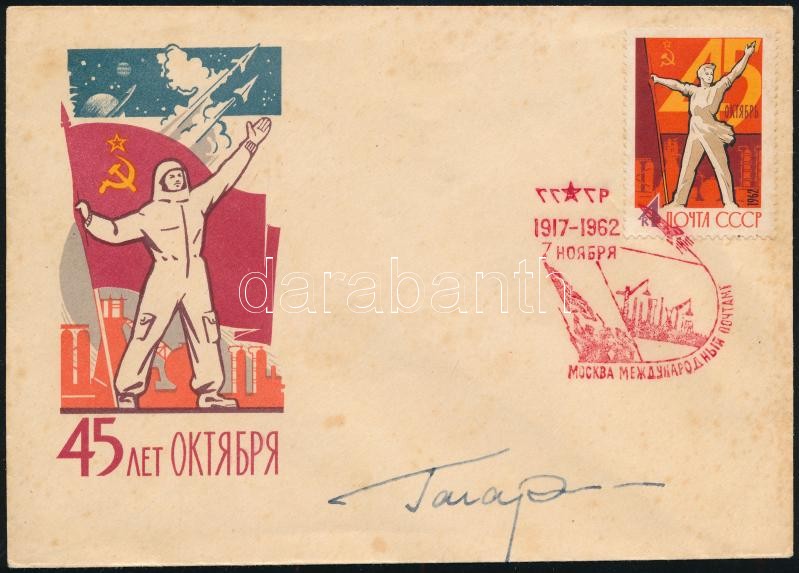 Jurij Alekszejevics Gagarin (1934-1968) szovjet űrhajós autográf aláírása alkalmi borítékon / Autograph signature of Yuriy Alekseyevich Gagarin (1934-1968) Soviet astronaut on special cover