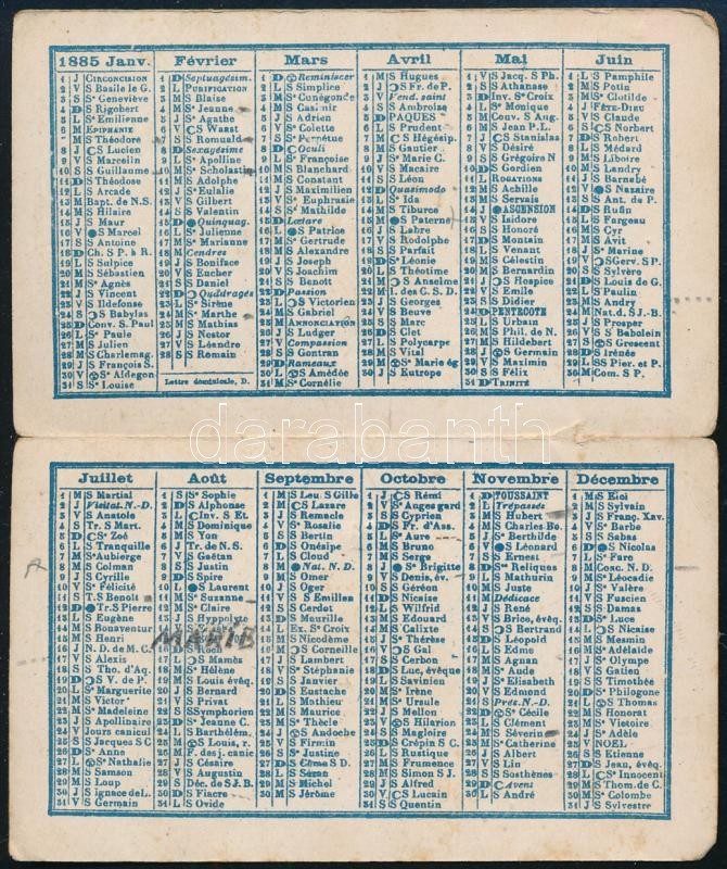 1885 Kártyanaptár Borreman vászon kereskedő. kihajtható, litográfia ki... https://www.darabanth.com/de/418-Fernauktion/418.0/Kunst-Dokumente-andere-Sammelgebiete/Werbungen~500022/1885-Kartyanaptar-Borreman-vaszon-kereskedo-kihajthato-litografia-kis-beszakadassal-8-5x10~II2633095