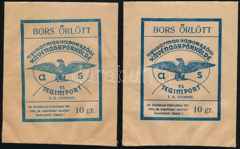 cca 1930 Nyugatmagyarországi Kávénagypörkölde őrlött bors zacskó két d... https://www.darabanth.com/de/418-Fernauktion/418.0/Kunst-Dokumente-andere-Sammelgebiete/Werbungen~500022/cca-1930-Nyugatmagyarorszagi-Kavenagyporkolde-orlott-bors-zacsko-ket-darab~II2639427