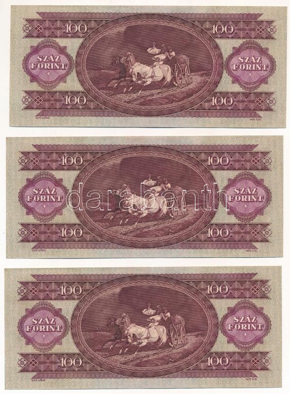 1968. 100Ft (3x) "B 004 008251 - B 004 008253" sorszámkövetők, nyomdai... https://www.darabanth.com/de/418-Fernauktion/418.0/Numismatik/Ungarische-Banknoten~2000007/1968-100Ft-3x-B-004-008251-B-004-008253-sorszamkovetok-nyomdai-papirranccal-TI-I--Ada~II2640353