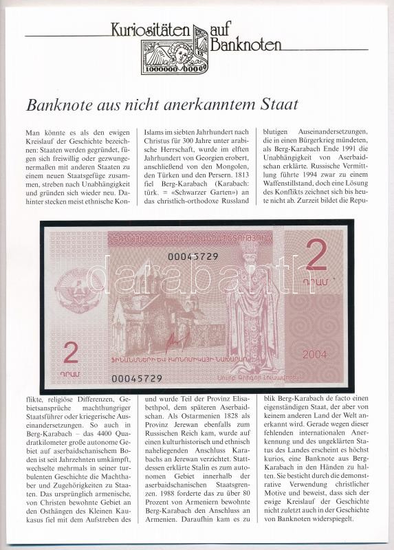 Arcah / Hegyi-Karabah 2004. 2D, német nyelvű "Kuriositäten auf Banknoten" tájékoztatólappal T:I