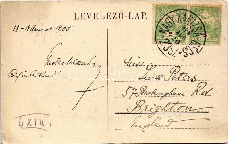 1906 Savanyúkút, Bad Sauerbrunn; Quelle und Wasserheilanstalt / Forrás és fürdőház / spa, bath, spring source + "NAGY-KANIZSA - BÉCS 23. SZ." vasúti mozgóposta bélyegző (EK)