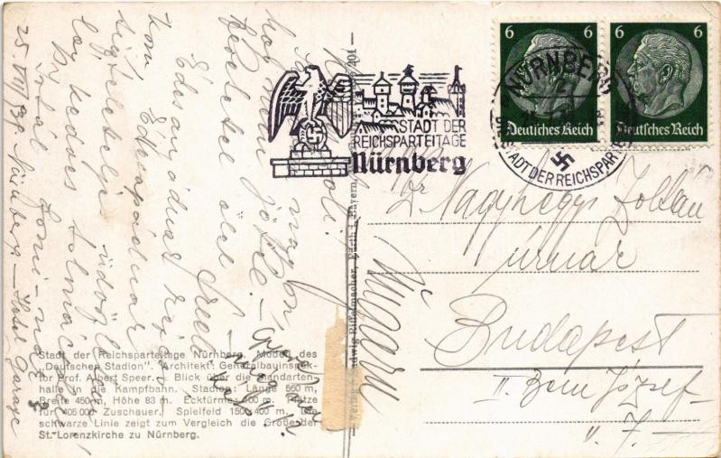 Beschreibung: 1939 Nürnberg, Nuremburg; Model des Deutsches Stadion. Architekt Prof. Albert Speer + "1939 NÜRNBERG Die Stadt der Reichsparteitage" So. Stpl. (EK)