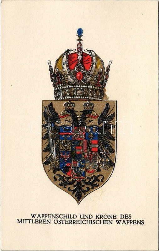 Wappenschild und Krone des Mittleren Österreichischen Wappens / Austria-Hungary coat of arms and crown. Offizielle Karte für Rotes Kreuz, Kriegsfürsorgeamt, Kriegshilfsbüro Nr. 286.