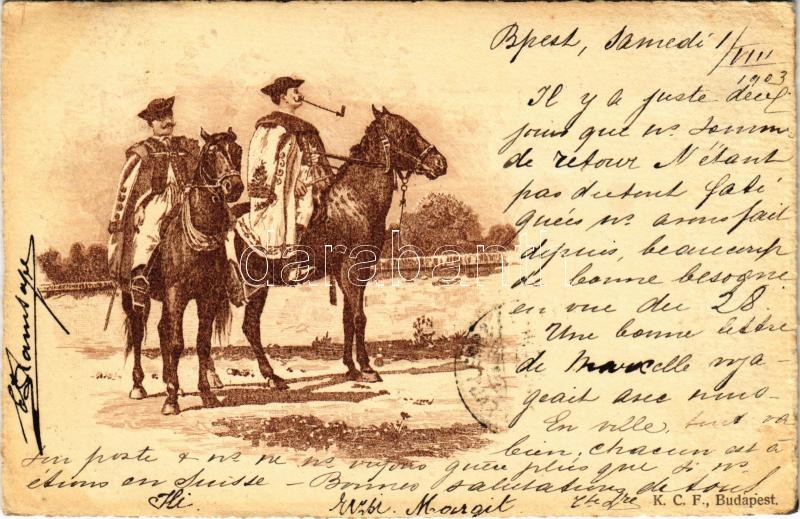 1903 Hortobágy. Magyar folklór művészlap / Hungarian folklore art post... https://www.darabanth.com/de/419-Fernauktion/419.0/Ansichtskarten/Folklore~1500023/1903-Hortobagy-Magyar-folklor-muveszlap-Hungarian-folklore-art-postcard-fl~II2650629