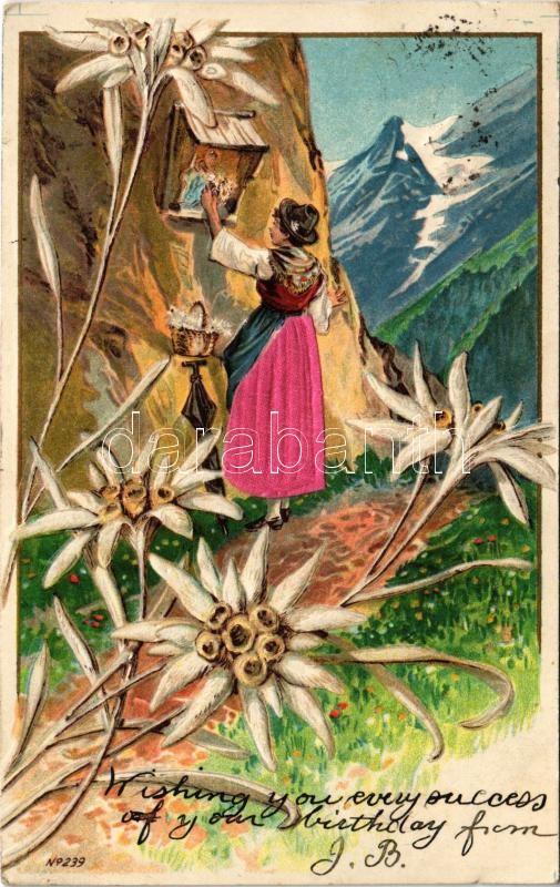 1904 Highlander folklore art postcard with lady. Art Nouveau, floral, ... https://www.darabanth.com/de/419-Fernauktion/419.0/Ansichtskarten/Folklore~1500023/1904-Highlander-folklore-art-postcard-with-lady-Art-Nouveau-floral-Emb-litho-with-real-silk-EK~II2648317