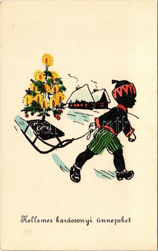 Kellemes karácsonyi ünnepeket / Christmas greeting art postcard with C... https://www.darabanth.com/de/419-Fernauktion/419.0/Ansichtskarten/GruC39Fkarten-Feste~1500072/Kellemes-karacsonyi-unnepeket-Christmas-greeting-art-postcard-with-Christmas-tree-and-sled~II2642804