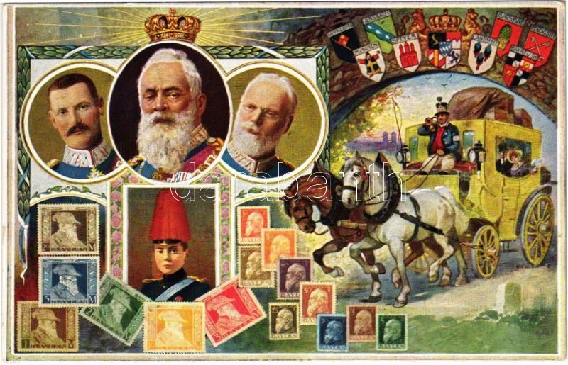 1821-1911 Heil dem Regenten zum 90. Geburtstage. Luitpold von Bayern / 90th Birthday of Luitpold, Prince Regent of Bavaria, German stamps, coats of arms. Ottmar Zieher