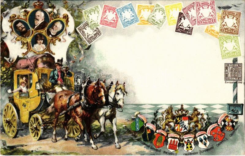 1821-1911 In Treue fest. Heil dem Regenten zum 90. Geburtstage. Luitpold von Bayern / 90th Birthday of Luitpold, Prince Regent of Bavaria, German stamps, coats of arms. Ottmar Zieher