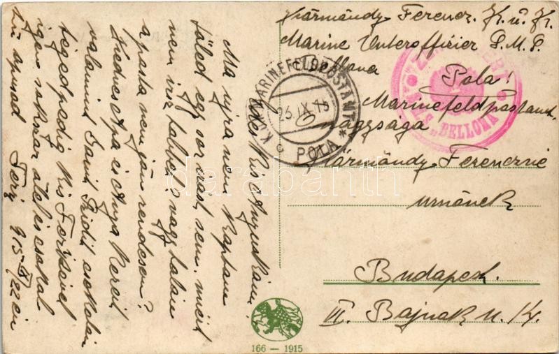 Beschreibung: 1915 Beschießung Venedigs. K.u.K. Kriegsmarine / WWI Austro-Hungarian Navy art postcard, Bombing of Venice s: F. Höllerer + "ZENSURIERT SMS BELLONA" (EK)