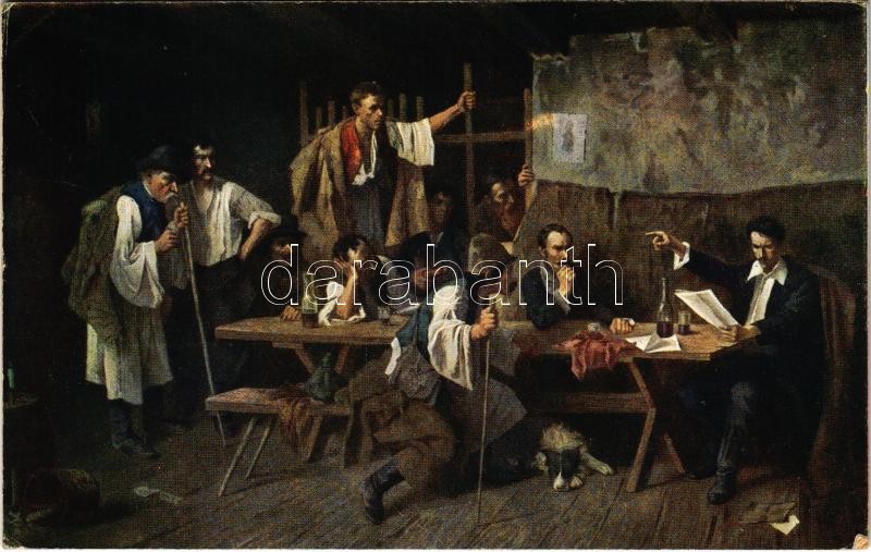 Beschreibung: 1922 Petőfi a csárdában. Magyar Művészet Rotophot Budapest Nr. 747. / Petőfi in der Csárda. Ungarische Kunst / Hungarian art postcard s: Révész (EK)