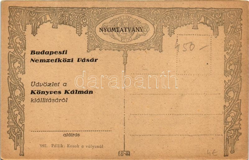 Kosok a vályúnál. Budapesti Nemzetközi Vásár. Üdvözlet a Könyves Kálmá... https://www.darabanth.com/de/419-Fernauktion/419.0/Ansichtskarten/Kunstlerkarten~1500047/Kosok-a-valyunal-Budapesti-Nemzetkozi-Vasar-Udvozlet-a-Konyves-Kalman-kiallitasaro~II2647214