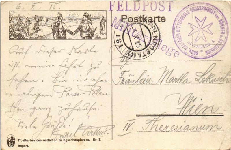 1915 Östl. Kriegsschauplatz 3. Galizien-Lublin-Warschau. Postkarten des östlichen Kriegsschauplatzes Nr. 3. / Első világháborús keleti hadszíntér: Galícia-Lublin-Varsó / WWI Eastern theater of war: Galicia-Lublin-Warsaw + "Souv. Malteser Ritterorden Grosspriorat von Böhmen u. Österreich SPITALZUG A" (EB)