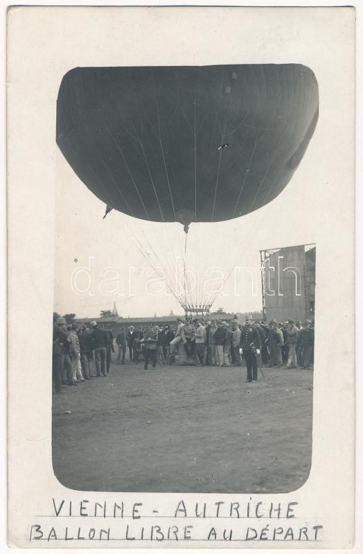 1914 Vienne-Autriche. Ballon Libre au Départ / Első világháborús osztrák-magyar katonai megfigyelő ballon elinduláskor Bécsben / WWI Austro-Hungarian K.u.K. military observation balloon in Wien. photo + "K.u.K. Luftschifferabteilung" (kis szakadás / small tear)
