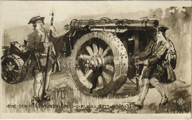 Beschreibung: Eine der Karthaunen gross u. klein Zeit Karl VI. Officielle Ausgabe des Festzugs-Comité Wien / Austro-Hungarian K.u.K. military art postcard s: F. Gornik