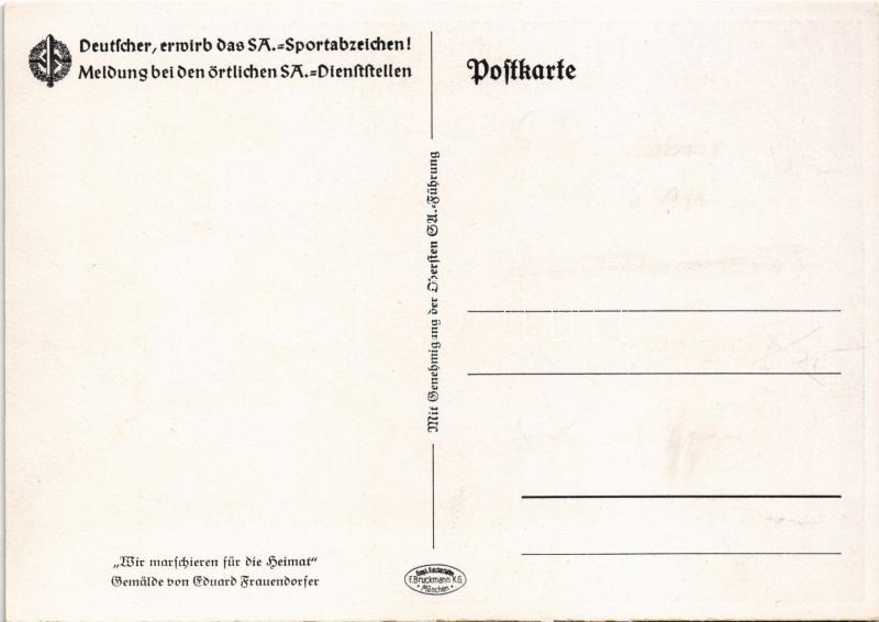 Wir marschieren für die Heimat. Deutscher, erwirb das SA.-Sportabzeichen! Meldung bei den örtlichen SA.-Dienststellen / WWII German Nazi military propaganda. Sturmabteilung Sports Badge s: Eduard Frauendorfer