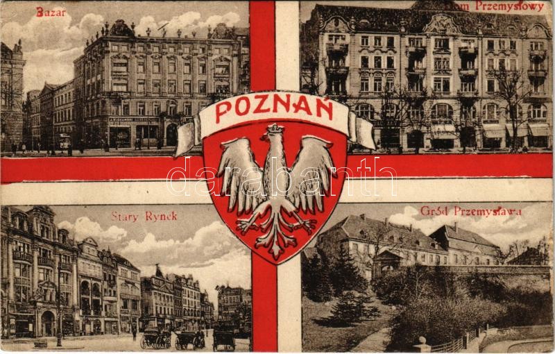 Poznan, Posen; Bazar, Stary Rynek, Gród Przemyslawa, Dom Przemyslowy, ... https://www.darabanth.com/de/419-Fernauktion/419.0/Ansichtskarten/Polen~1500093/Poznan-Posen-Bazar-Stary-Rynek-Grod-Przemyslawa-Dom-Przemyslowy-J-Wieklinski-Polish-coat-o~II2651214