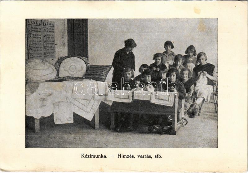 Beschreibung: 1929 Nyomorék Gyermekek Országos Otthona, kézimunka, hímzés, varrás, stb. Budapest, Mexikói út 61-64.