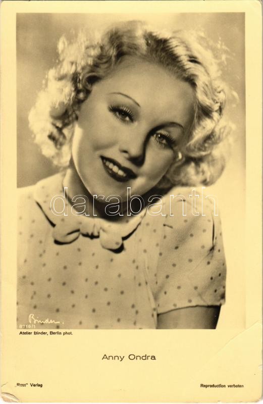 Anny Ondra. "Ross" Verlag 8716/1. (EB) https://www.darabanth.com/de/419-Fernauktion/419.0/Ansichtskarten/Schauspieler-Schauspielerin~1500065/Anny-Ondra-Ross-Verlag-87161-EB~II2590338