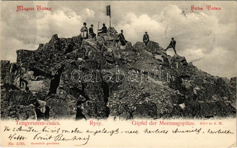 1905 Tátra, Magas-Tátra, Vysoké Tatry; Tengerszem-csúcs, turisták. Fra... https://www.darabanth.com/de/419-Fernauktion/419.0/Ansichtskarten/Slowakei~1500007/1905-Tatra-Magas-Tatra-Vysoke-Tatry-Tengerszem-csucs-turistak-Franz-Pietschmann-No-1793-~II2644570