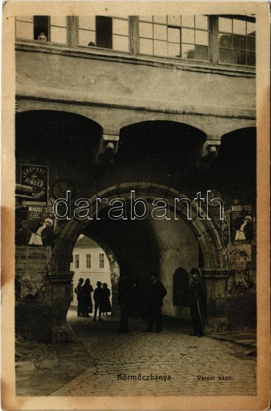 1910 Körmöcbánya, Kremnitz, Kremnica; Városi kapu, Maggi ételízesítő, ... https://www.darabanth.com/de/419-Fernauktion/419.0/Ansichtskarten/Slowakei~1500007/1910-Kormocbanya-Kremnitz-Kremnica-Varosi-kapu-Maggi-etelizesito-Singer-varrogep-rekl~II2650397