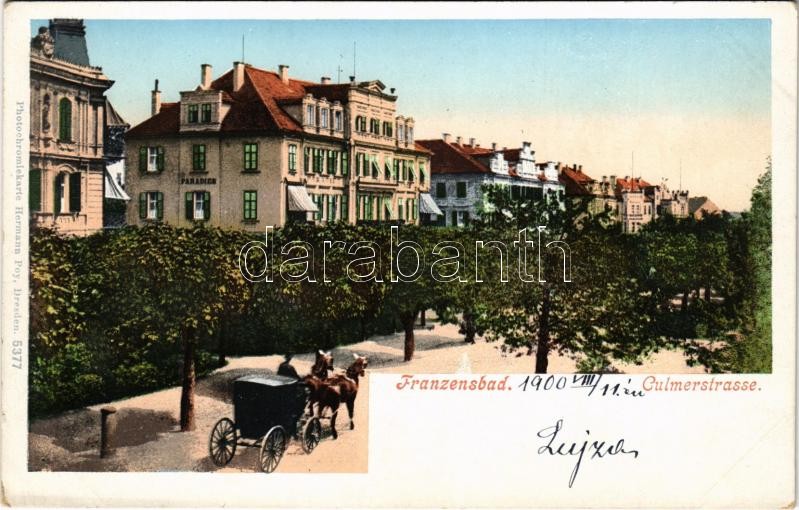 1900 Frantiskovy Lázne, Franzensbad; Culmerstrasse / street view, vill... https://www.darabanth.com/de/419-Fernauktion/419.0/Ansichtskarten/Tschechische-Republik~1500060/1900-Frantiskovy-Lazne-Franzensbad-Culmerstrasse-street-view-villas~II2643940