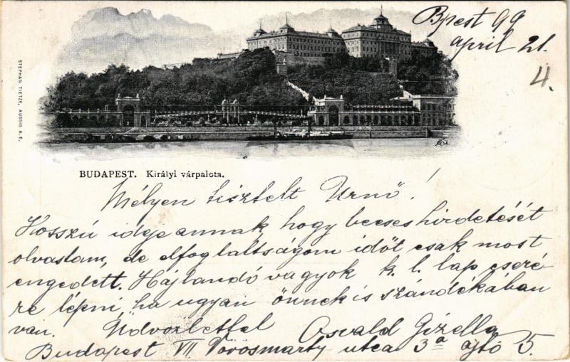 1899 (Vorläufer) Budapest I. Királyi várpalota. Stephan Tietze (EK) https://www.darabanth.com/de/419-Fernauktion/419.0/Ansichtskarten/Ungarn~1500005/1899-Vorlaufer-Budapest-I-Kiralyi-varpalota-Stephan-Tietze-EK~II2644558