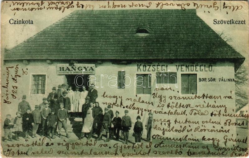 Beschreibung: 1923 Budapest XVI. Cinkota, Hangya fogyasztási és értékesítő szövetkezet üzlete és saját kiadása, Községi vendéglő, bor, sör és pálinka (EK)