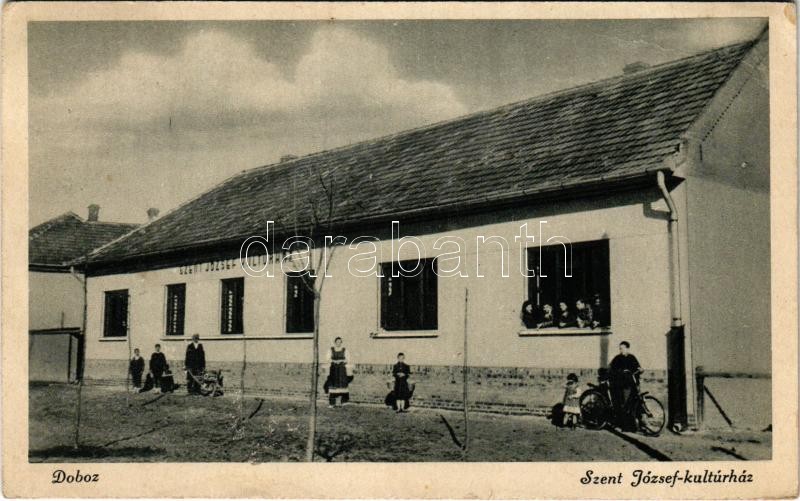 1952 Doboz, Szent József kultúrház, kerékpár (EK) https://www.darabanth.com/de/419-Fernauktion/419.0/Ansichtskarten/Ungarn~1500005/1952-Doboz-Szent-Jozsef-kulturhaz-kerekpar-EK~II2648916
