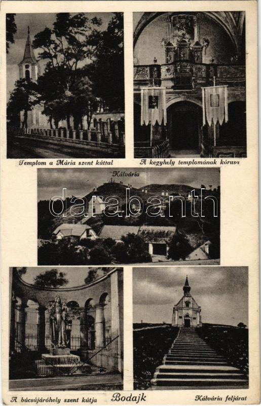 Beschreibung: Bodajk, Templom a Mária szentkúttal, Kálvária, feljárat, búcsújáróhely szentkútja, a kegyhely templomának kórusa. Fent János kiadása