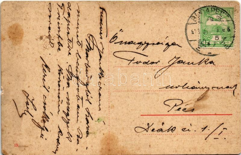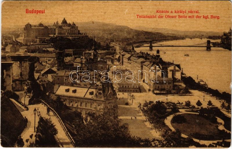 Beschreibung: Budapest I. Tabán, Királyi vár, Döbrentei tér, Purgo, Szt. Gellért szobor. W.L. (?) 19. (fl)