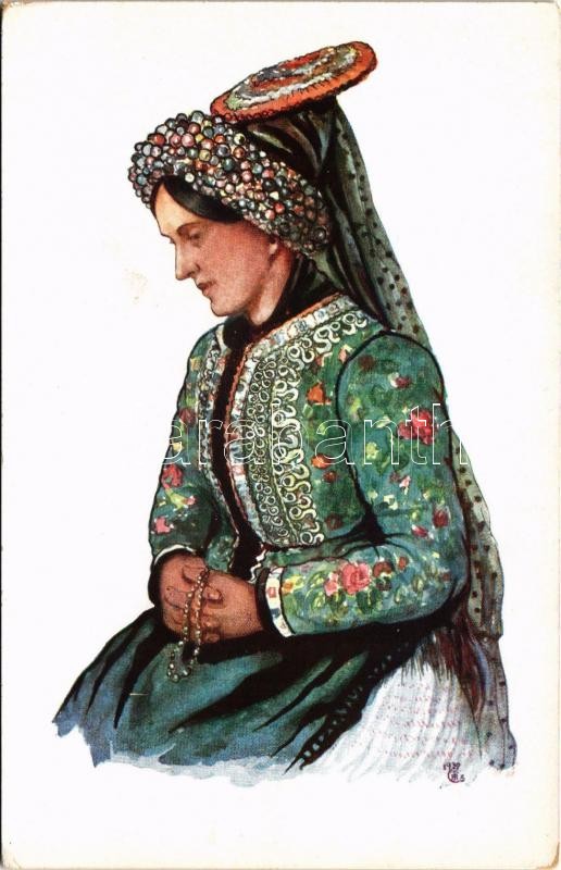 Beschreibung: Szentistván, Matyó menyecske, magyar folklór művészlap s: Csikós Tóth András (EK)