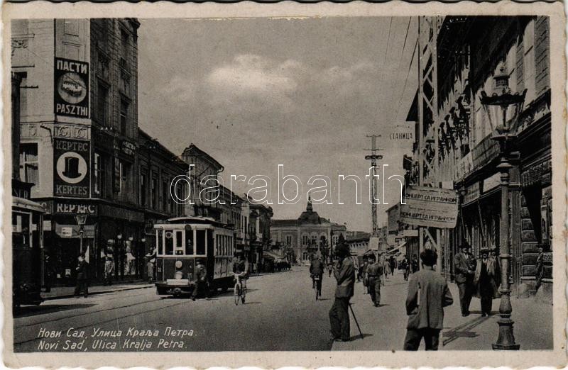 1941 Újvidék, Novi Sad; Ulica Kralja Petra / street, tram, shops / utc... https://www.darabanth.com/de/419-Fernauktion/419.0/Ansichtskarten/Vojvodina~1500010/1941-Ujvidek-Novi-Sad-Ulica-Kralja-Petra-street-tram-shops-utca-villamos-Kertes-es-Pasz~II2649894