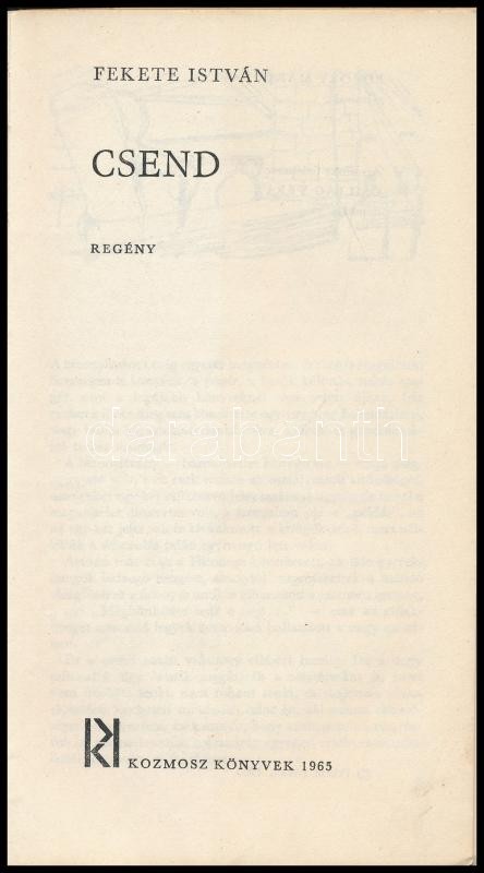 Fekete István: Csend. Bozóky Mária rajzaival. Bp., 1965, Kozmosz. Első... https://www.darabanth.com/de/419-Fernauktion/419.0/Bucher/Bucher-Andere-kuriositaten~1000022/Fekete-Istvan-Csend-Bozoky-Maria-rajzaival-Bp-1965-Kozmosz-Elso-kiadas-Kiadoi-papirkC3~II2645665