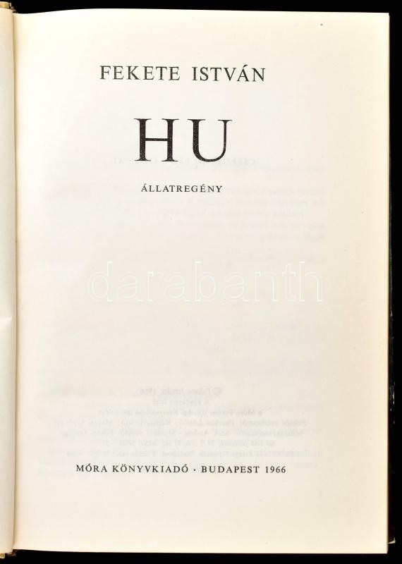 Fekete István: Hu. Bp., 1966, Móra. Első kiadás. Csergezán Pál rajzaiv... https://www.darabanth.com/de/419-Fernauktion/419.0/Bucher/Bucher-Andere-kuriositaten~1000022/Fekete-Istvan-Hu-Bp-1966-Mora-Elso-kiadas-Csergezan-Pal-rajzaival-illusztralva-Kiado~II2645669