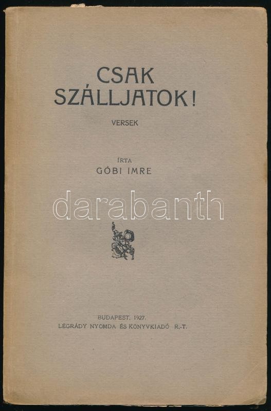 Góbi Imre: Csak szálljatok! Versek. Bp., 1927, Légrády Nyomda és Könyv... https://www.darabanth.com/de/419-Fernauktion/419.0/Bucher/Bucher-Andere-kuriositaten~1000022/Gobi-Imre-Csak-szalljatok-Versek-Bp-1927-Legrady-Nyomda-es-Konyvkiado-kiadoi-papirkC3~II2644453