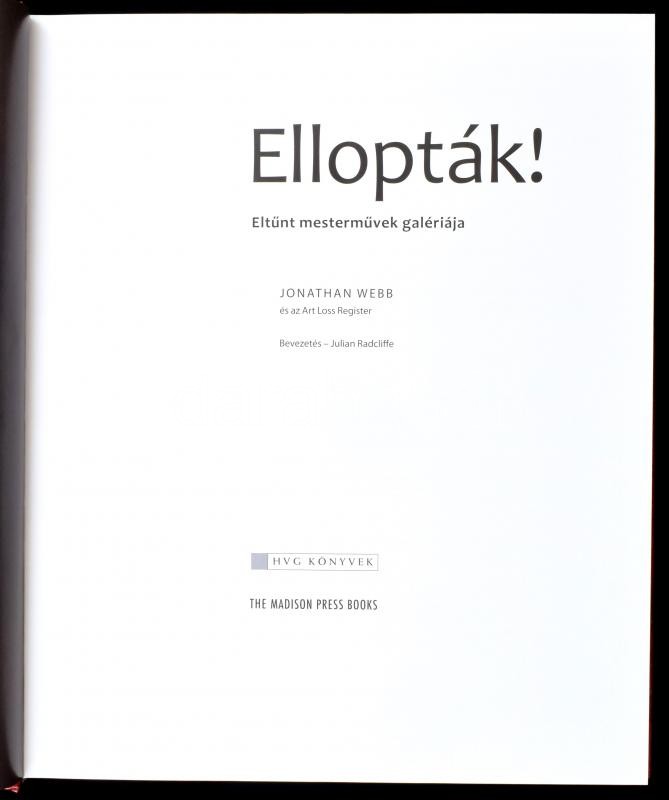 Webb, Jonathan: Ellopták! Eltűnt mesterművek galériája. Ford.: Garai A... https://www.darabanth.com/de/419-Fernauktion/419.0/Bucher/Bucher-Architektur-Kunst~1000009/Webb-Jonathan-Elloptak-Eltunt-mestermuvek-galeriaja-Ford-Garai-Attila-Boross-Anna-Bp-~II2647434