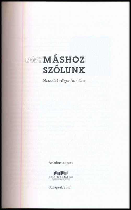 Beschreibung: Egymáshoz szólunk. Hosszú hallgatás után. Ariadne csoport. Szerk.: Előd Nóra. Bp., 2018., Oriold és Társai. Szövegközti fekete-fehér fotókkal illusztrált. Kiadói papírkötés