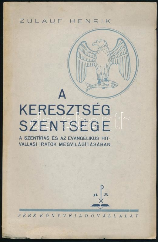 Zulauf Henrik: A keresztség szentsége. A Szentírás és az evangélikus hitvallási iratok megvilágításában, Bp., é.n., Fébé Könyviadóvállalat, kissé kopott kiadói papírkötésben