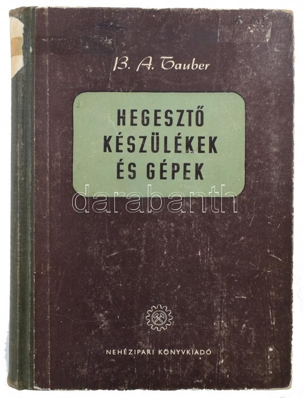 Tauber, B. A.: Hegesztőkészülékek és gépek. Ford.: Wittvindits Tibor. Bp., 1954, Nehézipari Könyv- és Folyóiratkiadó Vállalat, 420 p. Számos fekete-fehér ábrával, kihajtható mellékletekkel. Kiadói félvászon-kötés, kopott, kissé sérült borítóval, intézményi bélyegzőkkel. Megjelent 1000 példányban.