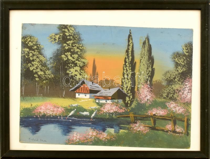 Endrédi Imre jelzéssel: Vízparti táj. Tempera, papír. Üvegezett fakere... https://www.darabanth.com/de/419-Fernauktion/419.0/Gemalde-und-Grafiken/Gemalde-und-Graphic-quot-signiertquot-quot-ohne-Signquot-~500002/Endredi-Imre-jelzessel-Vizparti-taj-Tempera-papir-Uvegezett-fakeretben-25x35-cm~II2624541