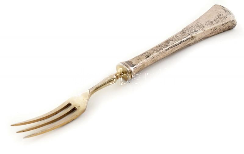 Beschreibung: Ezüst (Ag) nyelű villa, jelzett, kopott, h: 15,5cm, bruttó: 27g
