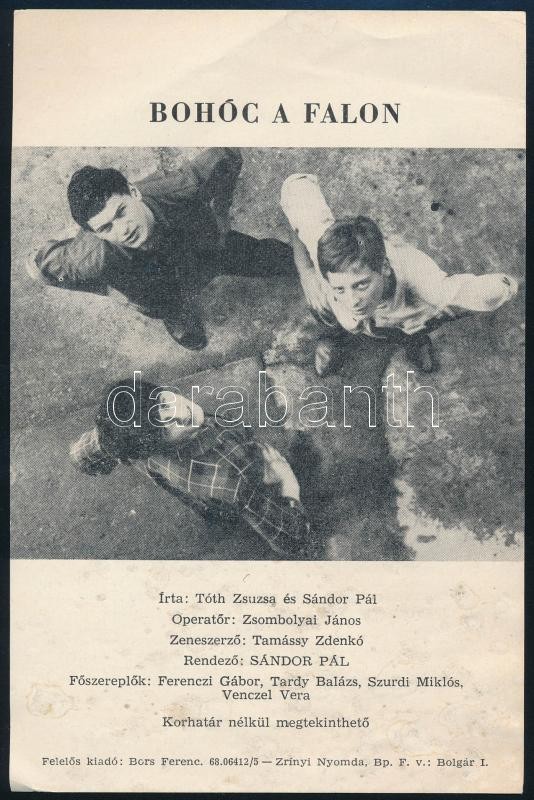 1968 Bohóc a falon c. film (rendező: Sándor Pál) ismertető kiadványa, ... https://www.darabanth.com/de/419-Fernauktion/419.0/Kunst-Dokumente-andere-Sammelgebiete/Drucksachen~1000002/1968-Bohoc-a-falon-c-film-rendezo-Sandor-Pal-ismerteto-kiadvanya-ketoldalas-kisse-folt~II2652266