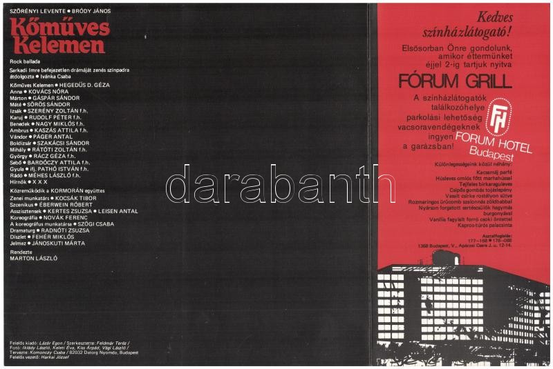 1982 Szörényi Levente, Bródy János: Kőműves Kelemen (rockballada), a P... https://www.darabanth.com/de/419-Fernauktion/419.0/Kunst-Dokumente-andere-Sammelgebiete/Drucksachen~1000002/1982-Szorenyi-Levente-Brody-Janos-Komuves-Kelemen-rockballada-a-Pesti-Szinhaz-ismertetC5~II2644494
