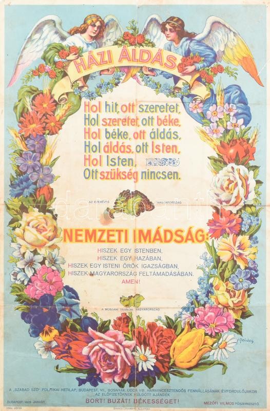 cca 1920 Házi Áldás nemzet imádsággal, Földes Imre (1881-1948) irreden... https://www.darabanth.com/de/419-Fernauktion/419.0/Kunst-Dokumente-andere-Sammelgebiete/Drucksachen~1000002/cca-1920-Hazi-Aldas-nemzet-imadsaggal-Foldes-Imre-1881-1948-irredenta-grafikaja-hajtott-~II2649018