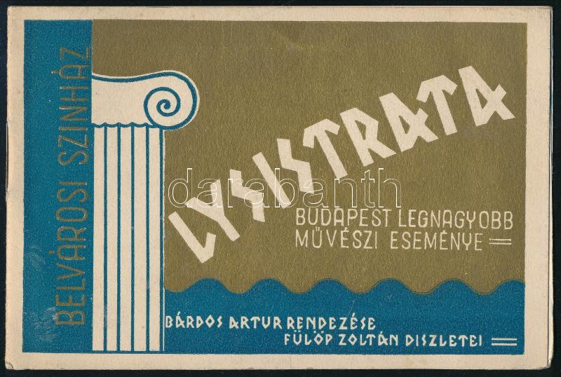 cca 1930 Belvárosi Színház Lysistrata eseményének programfüzete https://www.darabanth.com/de/419-Fernauktion/419.0/Kunst-Dokumente-andere-Sammelgebiete/Drucksachen~1000002/cca-1930-Belvarosi-Szinhaz-Lysistrata-esemenyenek-programfuzete~II2650617