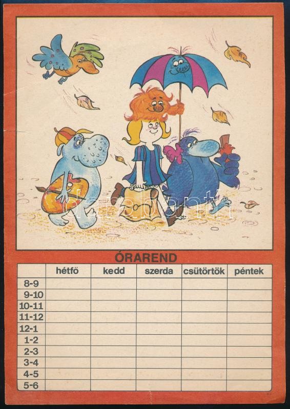 Beschreibung: cca 1980 Pom-Pom grafikus órarend, kisebb szakadásokkal, 28,5x20 cm