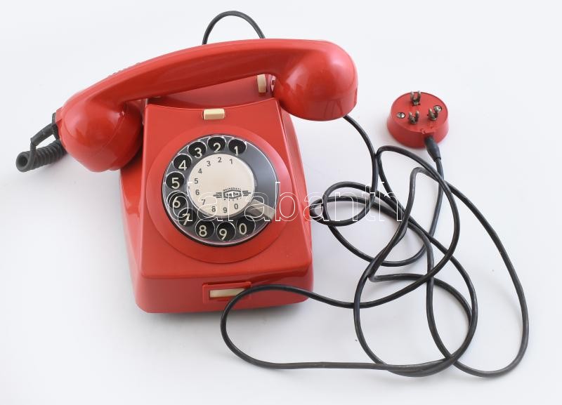 Mechanikai Művek retró bakelit tárcsázós telefon, piros színben, megkí... https://www.darabanth.com/de/419-Fernauktion/419.0/Kunst-Dokumente-andere-Sammelgebiete/Flohmarkt~500013/Mechanikai-Muvek-retro-bakelit-tarcsazos-telefon-piros-szinben-megkimelt-allapotban-ered~II2646953
