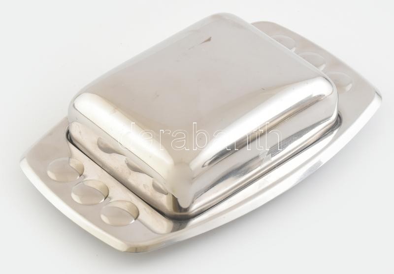 Vajtartó, krómozott fém, kis kopással, 20x13,5x5 cm https://www.darabanth.com/de/419-Fernauktion/419.0/Kunst-Dokumente-andere-Sammelgebiete/Flohmarkt~500013/Vajtarto-kromozott-fem-kis-kopassal-20x13-5x5-cm~II2646871