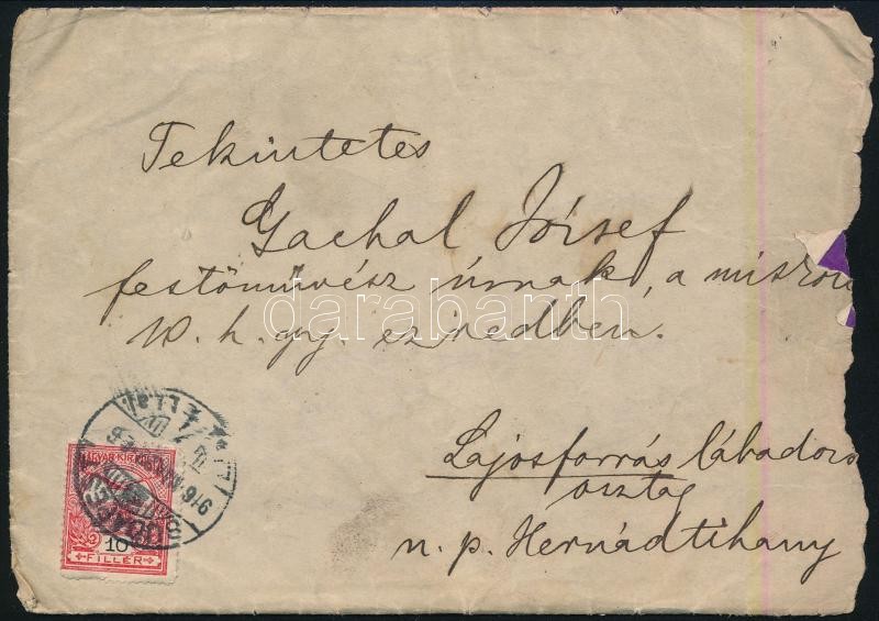 1914 Magyary Zoltán (1888-1945) egyetemi tanár, a közigazgatás tudományának nemzetközi hírű művelőjének autográf aláírással ellátott levele Eölvedi Gachal József (1889-1972) festőművésznek, személyes hangvétellel, melyben értesíti eladott képei vételáráról, borítékkal
